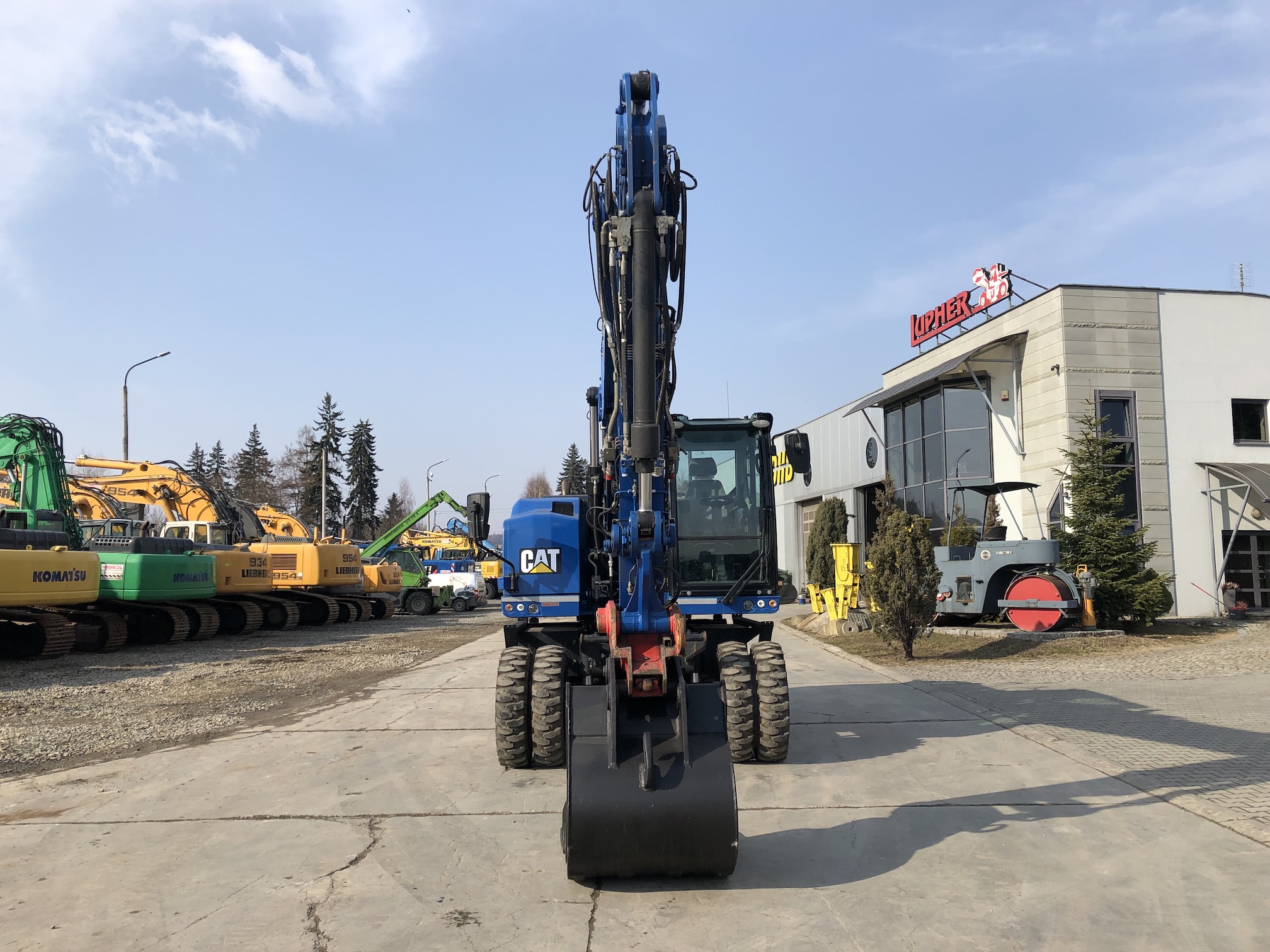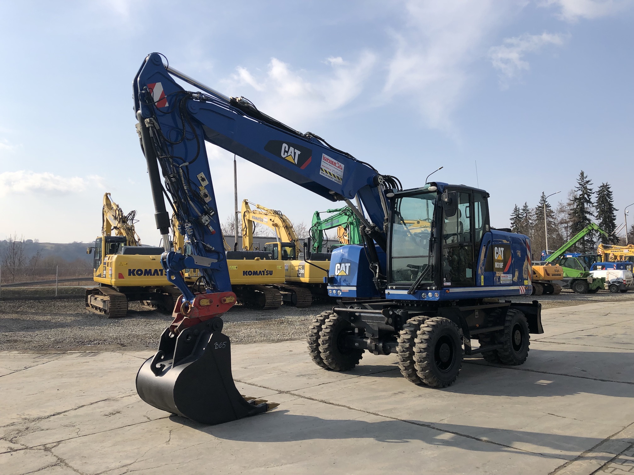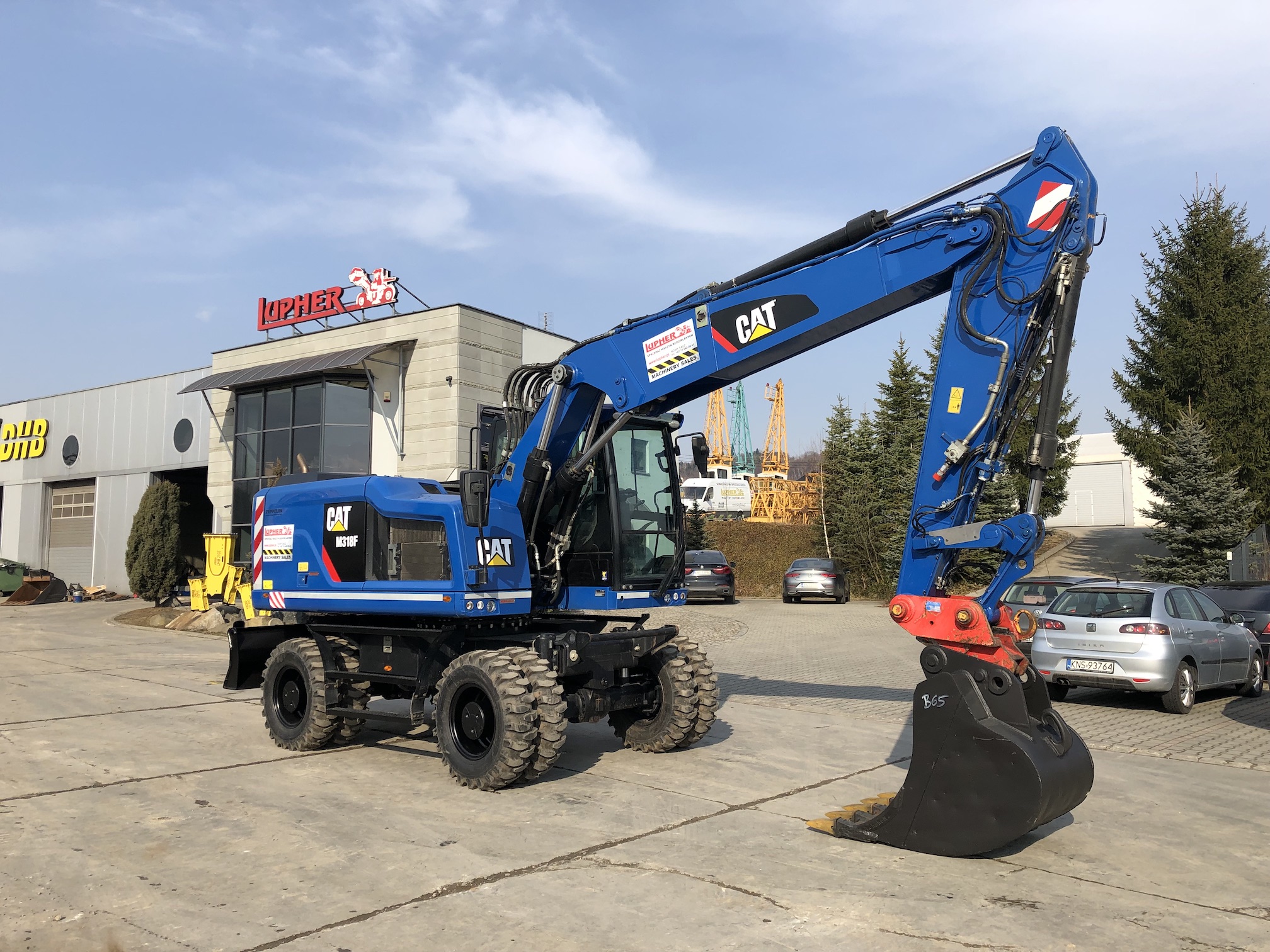 Koparka kołowa Caterpillar M318F z 2015 roku, oferowana przez firmę Lupher, przepracowała 5 773 motogodziny i waży 18 ton. Maszyna jest wyposażona w trzykrotnie łamane ramię, mechaniczne szybkozłącze, hydraulikę do nożyc lub młota oraz łyżkę do kopania. Napędzana silnikiem CAT C7.1 o mocy 129,4 kW, spełniającym normy emisji spalin Stage IV. Dodatkowo posiada lemiesz prostokątny, opony w rozmiarze 10.00-20, kamerę tylną, centralne smarowanie, radio, klimatyzację oraz oświetlenie robocze, zapewniając komfort i efektywność pracy operatora.