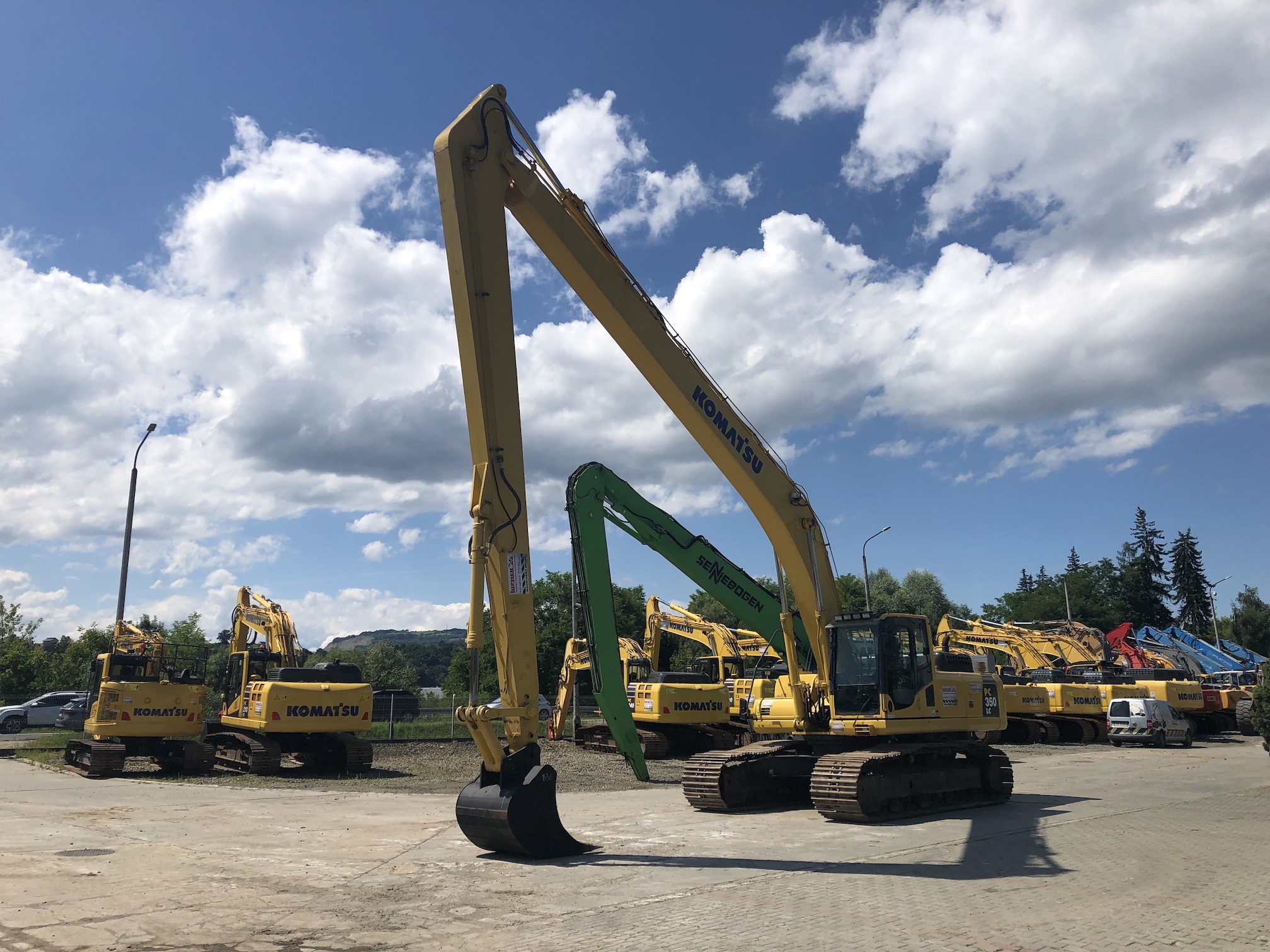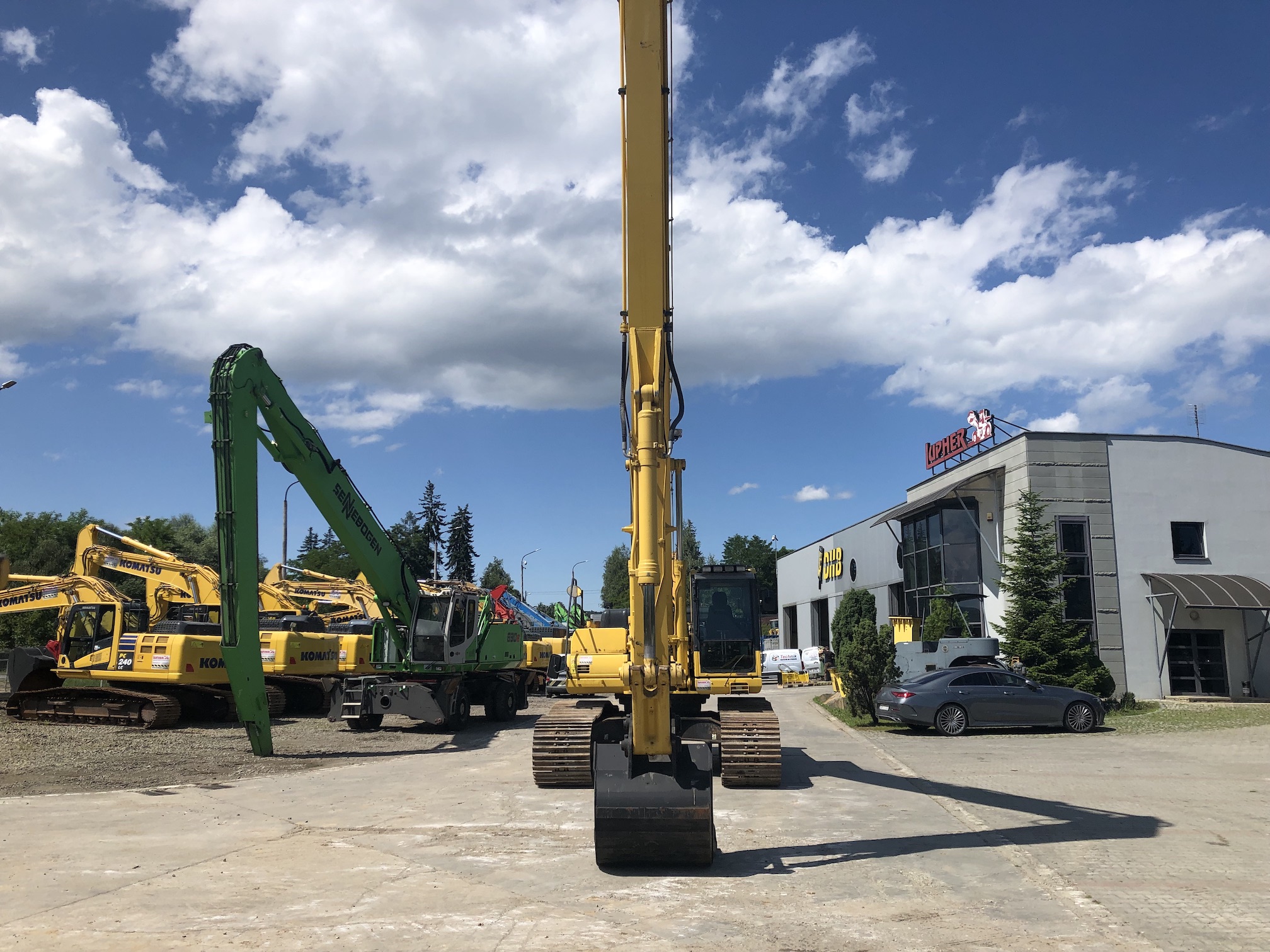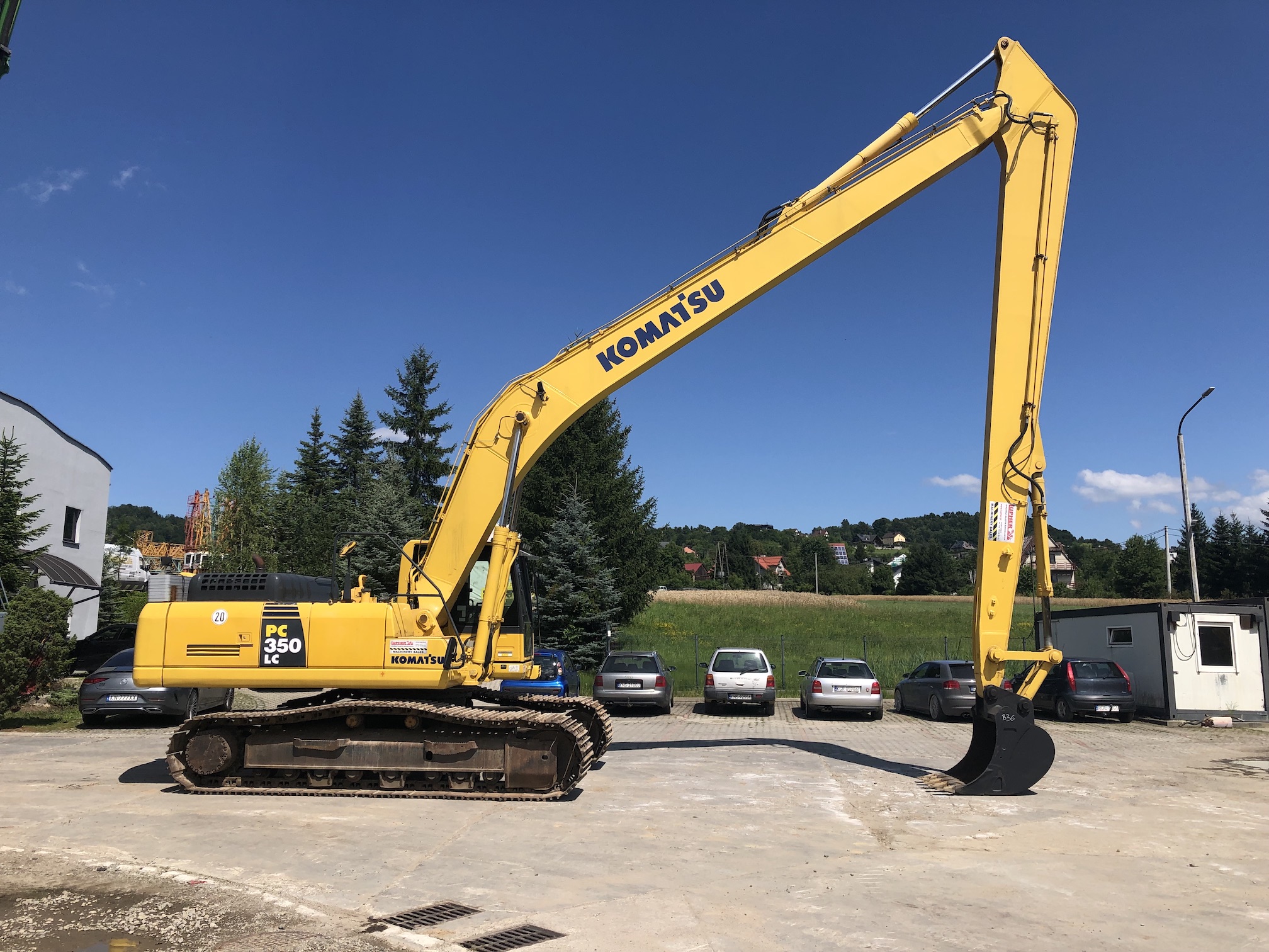 Koparka gąsienicowa Komatsu PC350LC-8 (10.4/7.8) z 2011 roku to wydajna maszyna o masie 36 ton i przebiegu 11 566 motogodzin. Napędzana jest silnikiem Komatsu SAA6D114E-3 o mocy 194 kW. Wyposażona została w ramię typu long reach, co pozwala na pracę na większym zasięgu. Maszyna posiada hydraulikę przystosowaną do obsługi łyżki skarpowej lub głowicy obrotowej oraz łyżkę do kopania. Stabilność zapewniają stalowe gąsienice z płytkami o szerokości 800 mm. Komfort pracy zwiększają kamera tylna, ręczny system smarowania, radio, ogrzewanie, klimatyzacja oraz oświetlenie robocze.